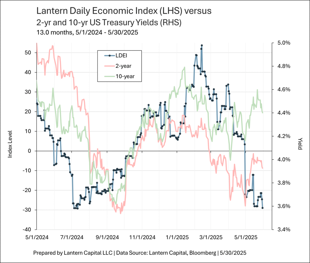 This week (from 5/23/2025 through 5/30/2025), the index’s net revision was +6.3 and it fell -5.7 to -29.0.