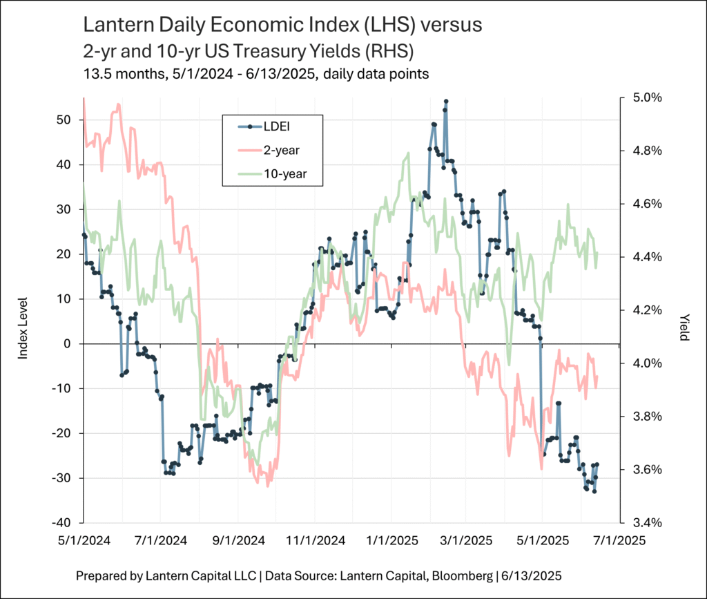 This week (from 6/6/2025 through 6/13/2025), the index’s net revision was +2.6 and it rose +3.8 to -27.0.