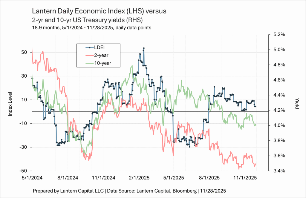 11-28-2025 LDEI Update by admin November 29, 2025, 9:47 am MST LDEI This week (from 11/21/2025 through 11/28/2025), the index was revised down -0.5 and fell -4.7 to +4.3.