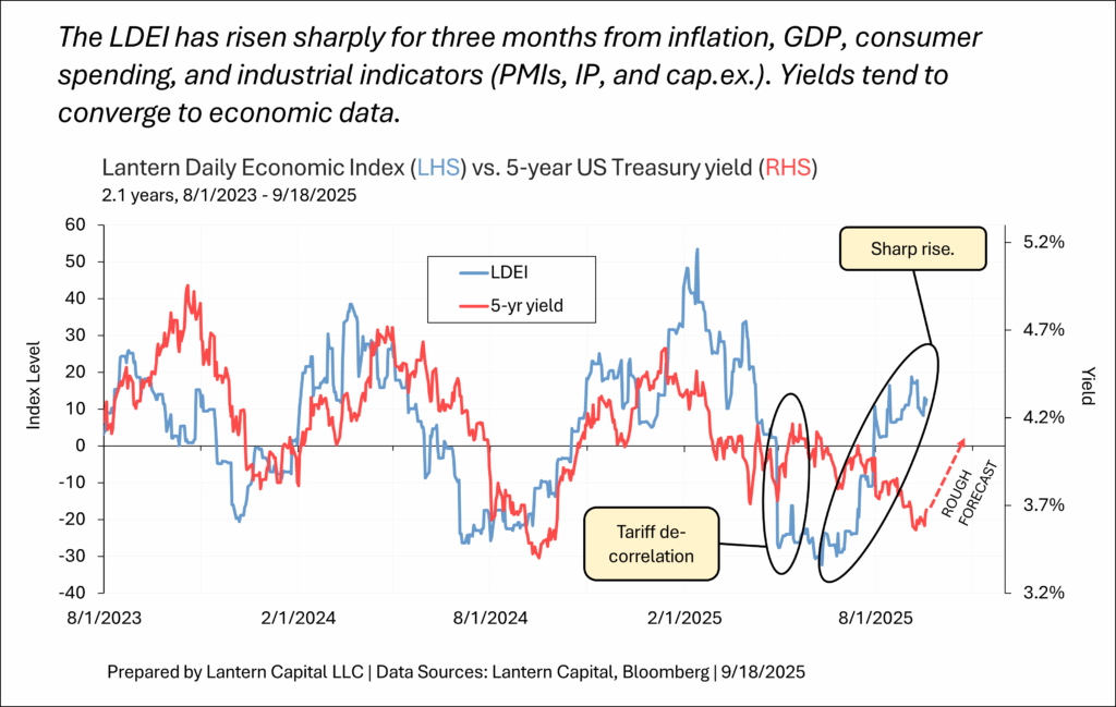 Yesterday’s FOMC meeting was a combination of dovish and hawkish elements, but overall, the meeting was more dovish than I expected because Jerome Powell sounded dovish in the press conference. Nevertheless, Treasury yields rose as I expected (about 6bps) and I continue to think they will rise a lot more to meet improving economic data since mid-June (chart below).