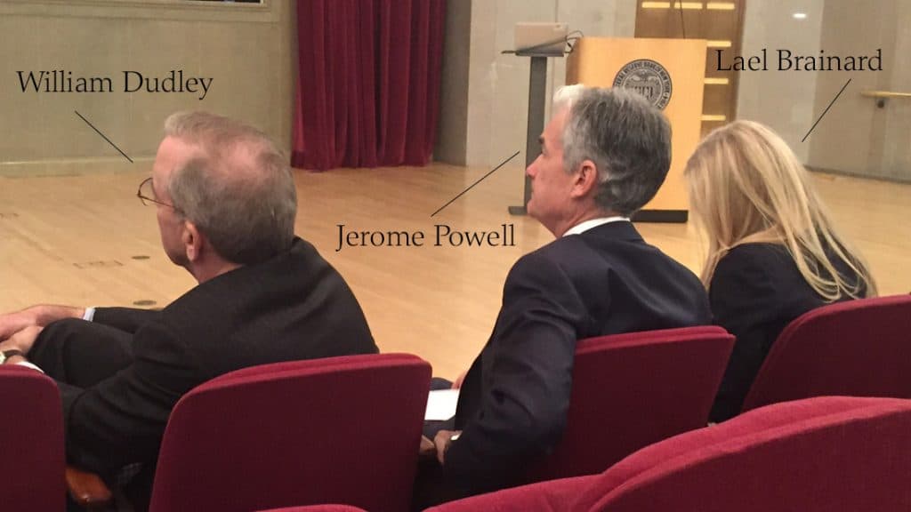 I sat two rows behind Dudley, Powell, and Lael Brainard for most of it. They were stars to me, and I was watching them work.